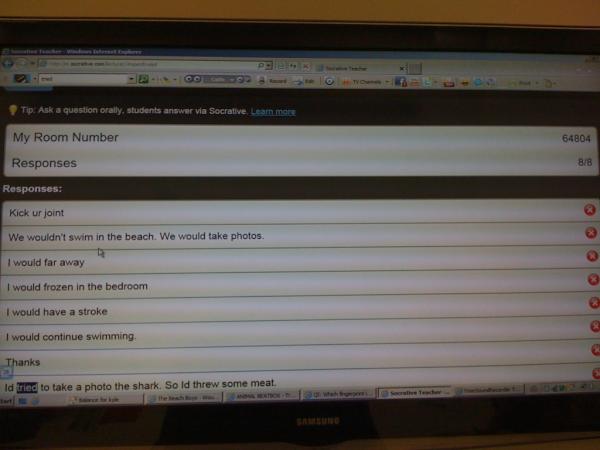 At this point, I would usually write some of the things I heard up on the whiteboard and talk together about what was good, how we could correct any errors, etc. In this case, though, I decided to use Socrative. Watch this video to see how it works.
