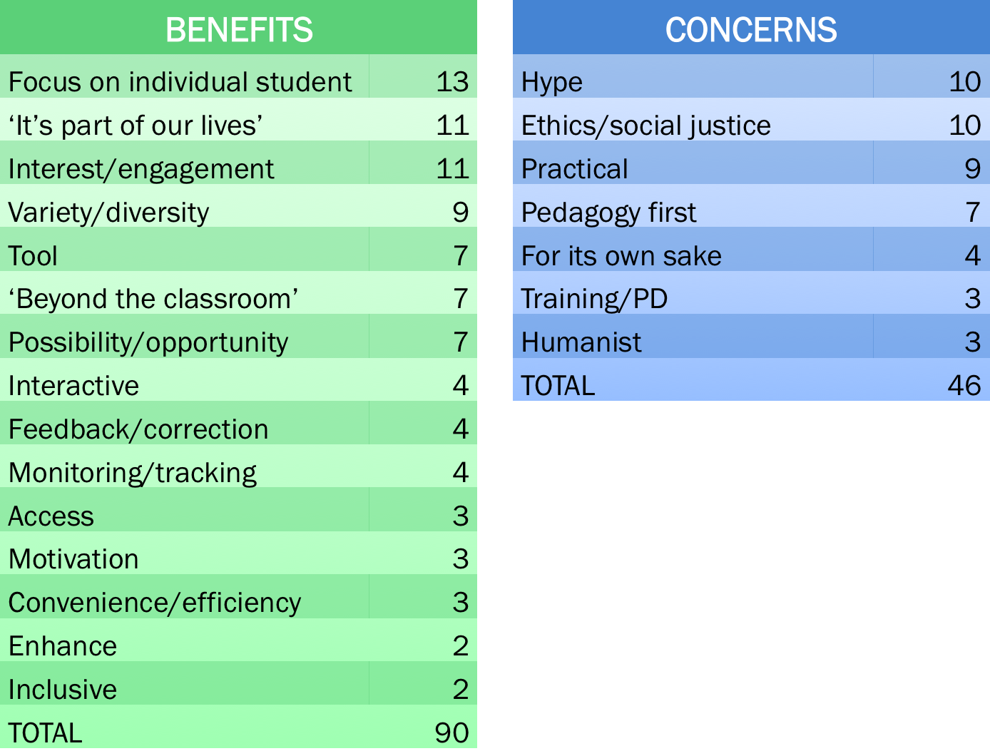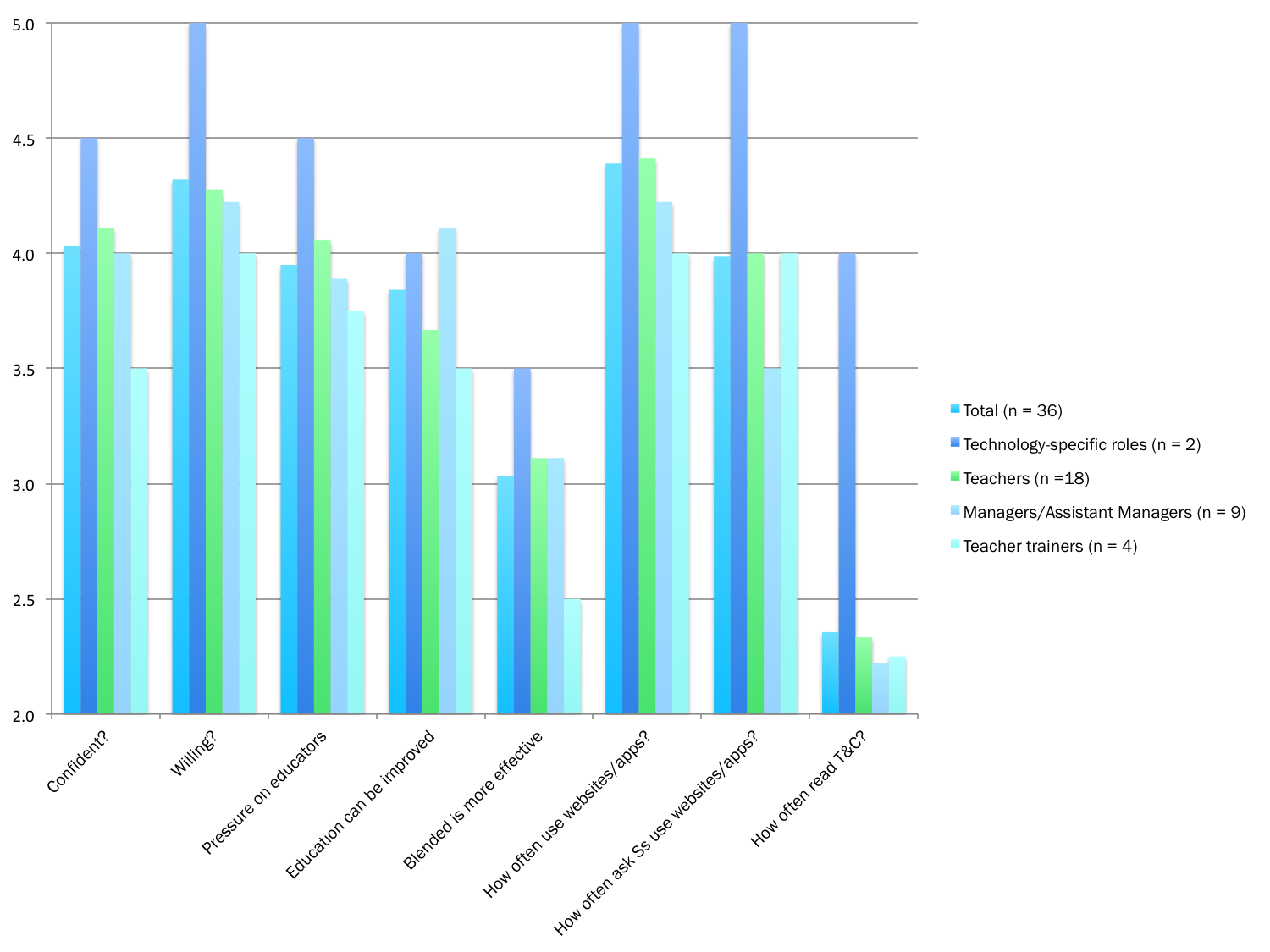 - What do the results of my survey tell us about attitudes amongst ELT educators towards educational technology? In other words, what are our ‘default settings’?