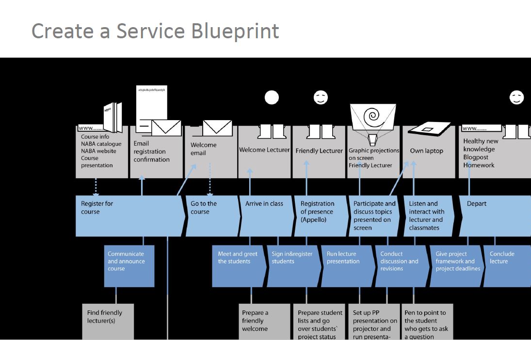 During the ‘Customer Service Management’ module of the IDLTM last year, I encountered Shostack’s notion of the ‘service blueprint’ via this 1997 article by John Walker. It involves “mapping out all the various interactions and actions that occur when customer and company meet.”
