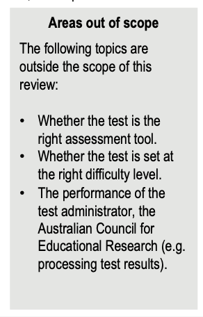 Actually, as I read the report, it becomes clearer and clearer that, whatever the psychometric qualities of the test (and we currently know *nothing* about those) the implementation of the test has been an appalling, avoidable mess. Every page reveals more of its overwhelming scale and severity.